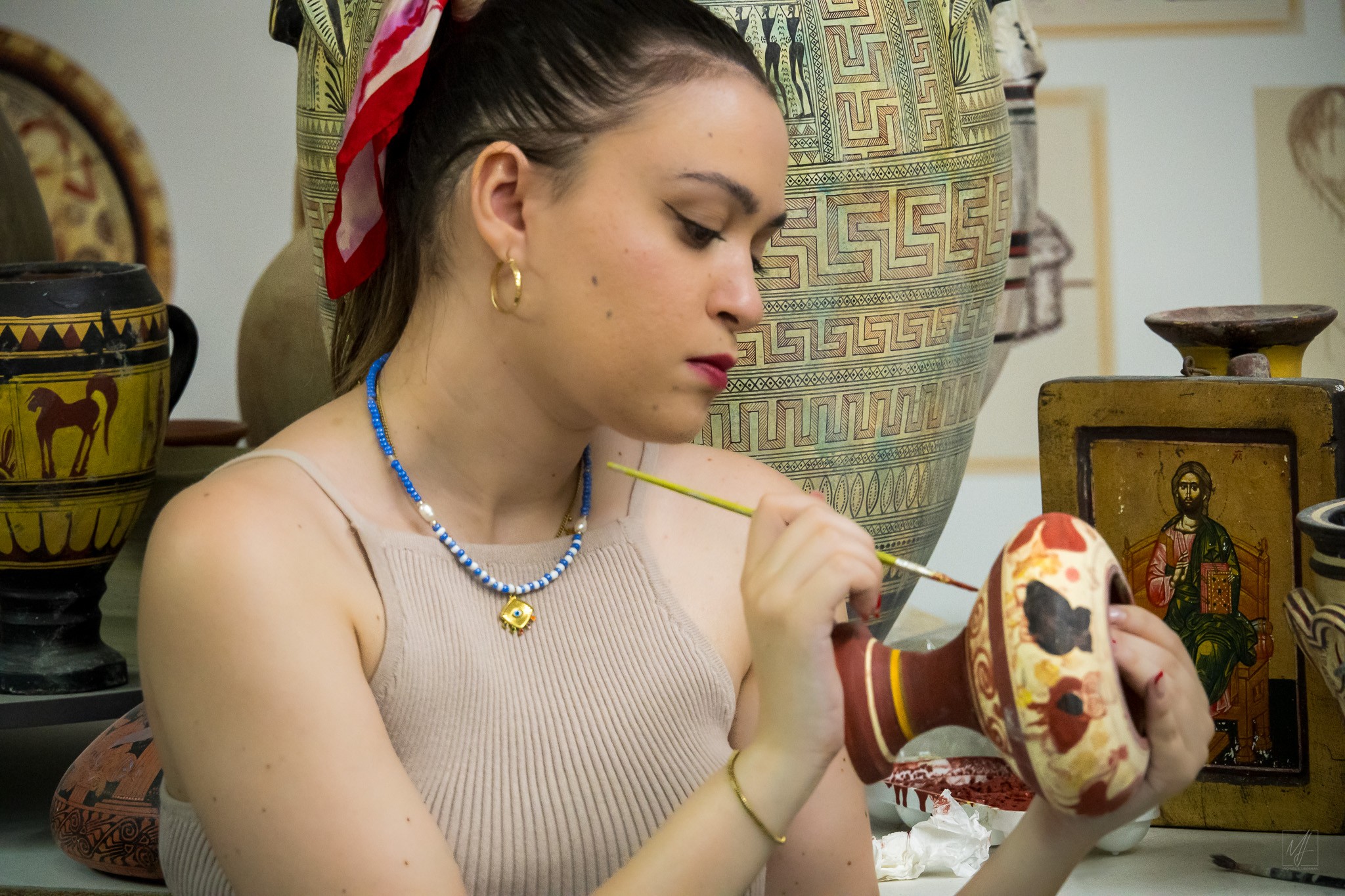 Next we’re back on the bus to Mycenae, about an hour away. Our first stop is the Mycenaen School of Ceramic Art to learn about the production of authentic ceramics.