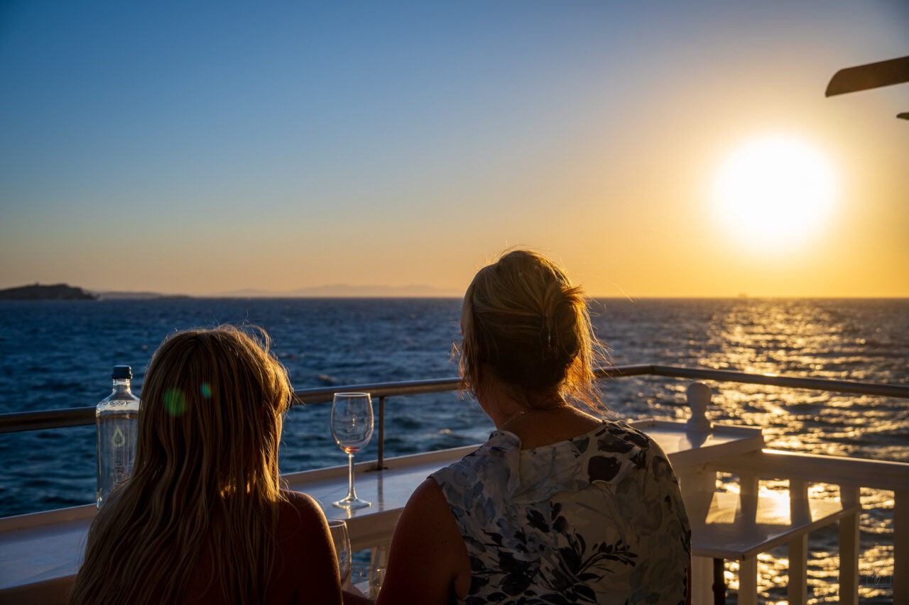 Then Michelle, Sophie, and I enjoy the sunset from Katerina’s Cocktail Bar in Little Venice. It’s beautiful!!