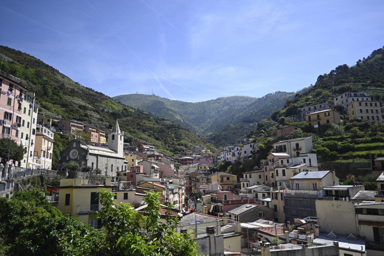 The Italian Riviera towns of Monterosso al Mare, Vernazza, Corniglia, Manarola, and Riomaggiore, with their pastel colored homes and buildings, perch on the steep hillsides above the Mediterranean. No major roadways here. Instead trails connect the terraced winemaking vineyards and olive groves to the anchovy fishing boats below.