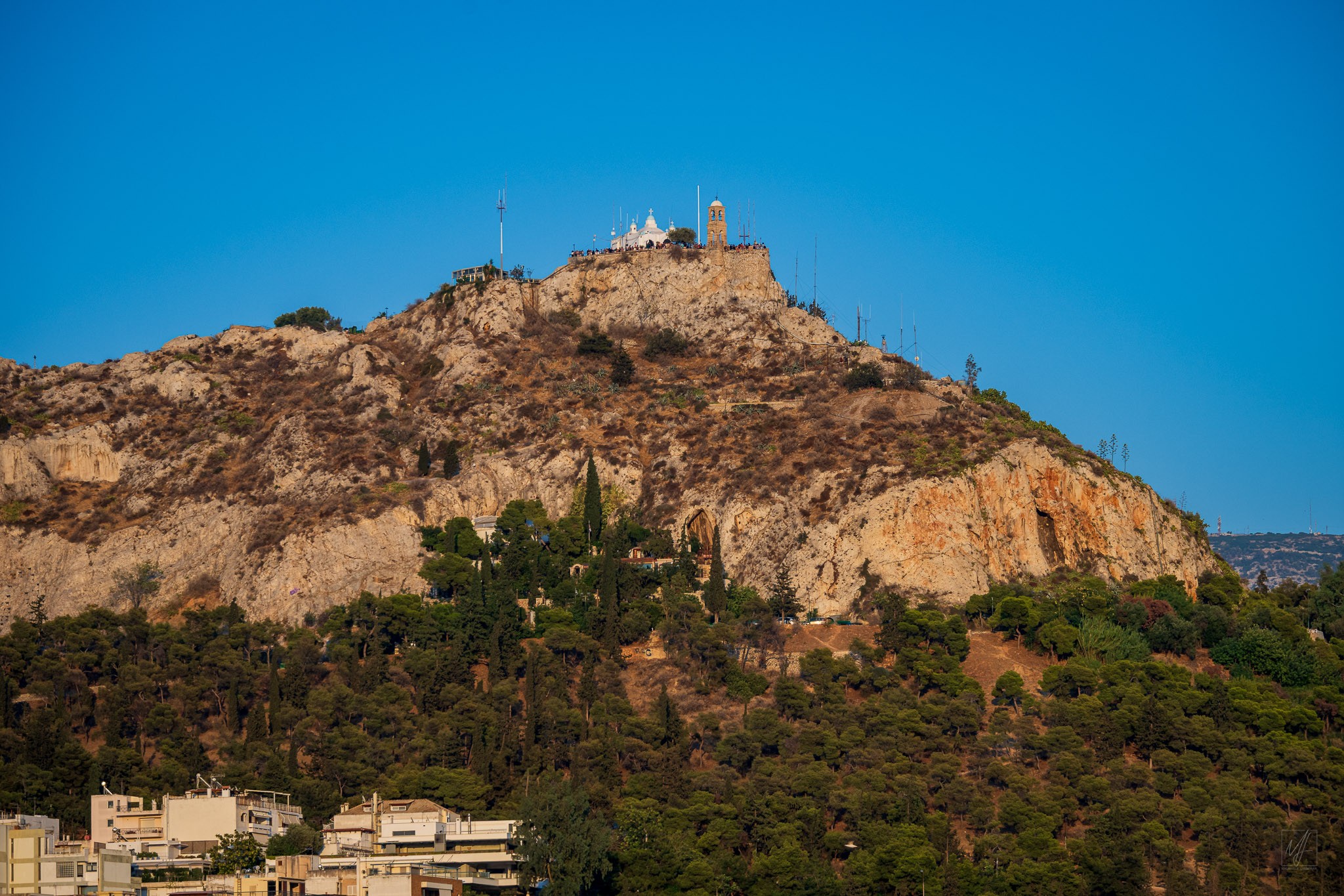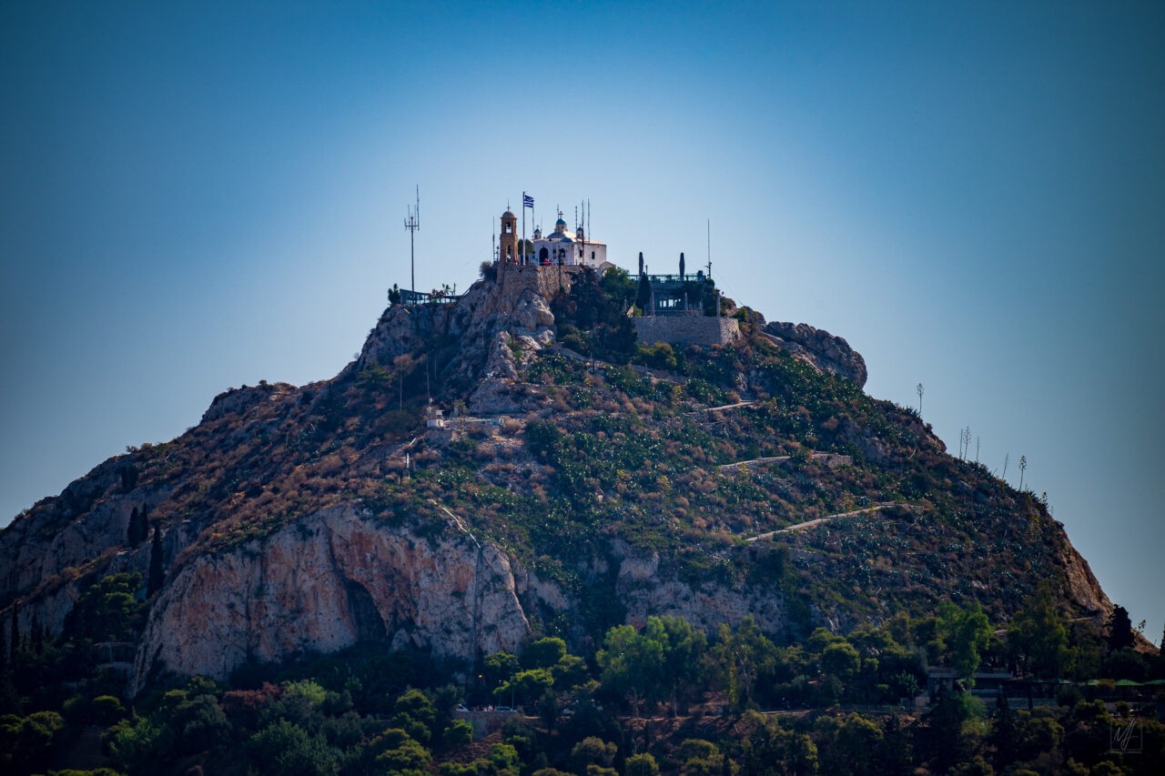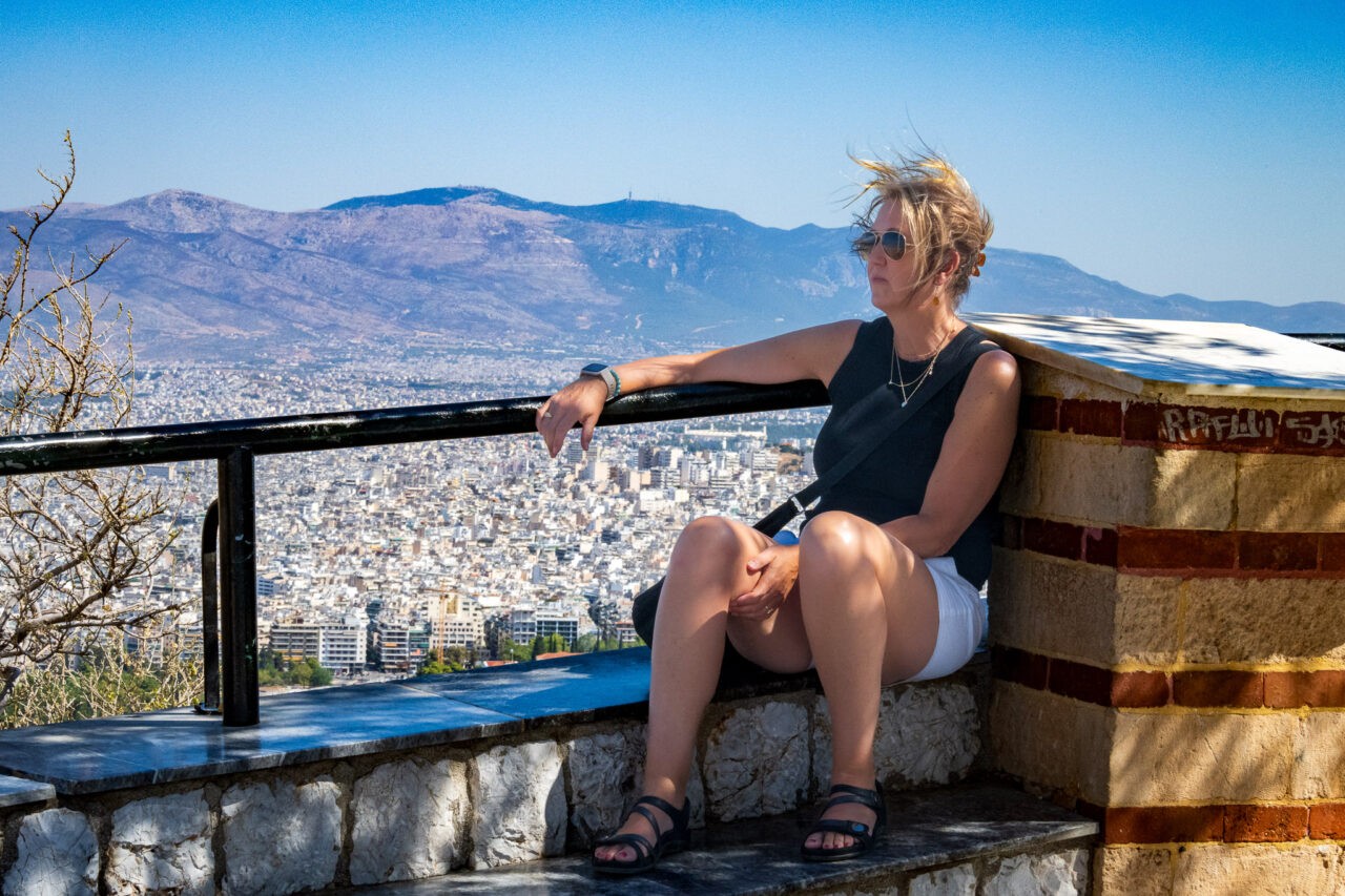 An hour bus ride gets us back to Athens to drop our bags at the Polis Grand Hotel. Check in isn’t until later this afternoon, so we’ve got some free time in Athens. Some members of the group are heading to the Acropolis, but Michelle and I are off on an adventure to Mount Lycabettus. Reached by funicular it’s the highest point in Athens and home to the 19th century Chapel of St. George. The views of the city from here are outstanding …