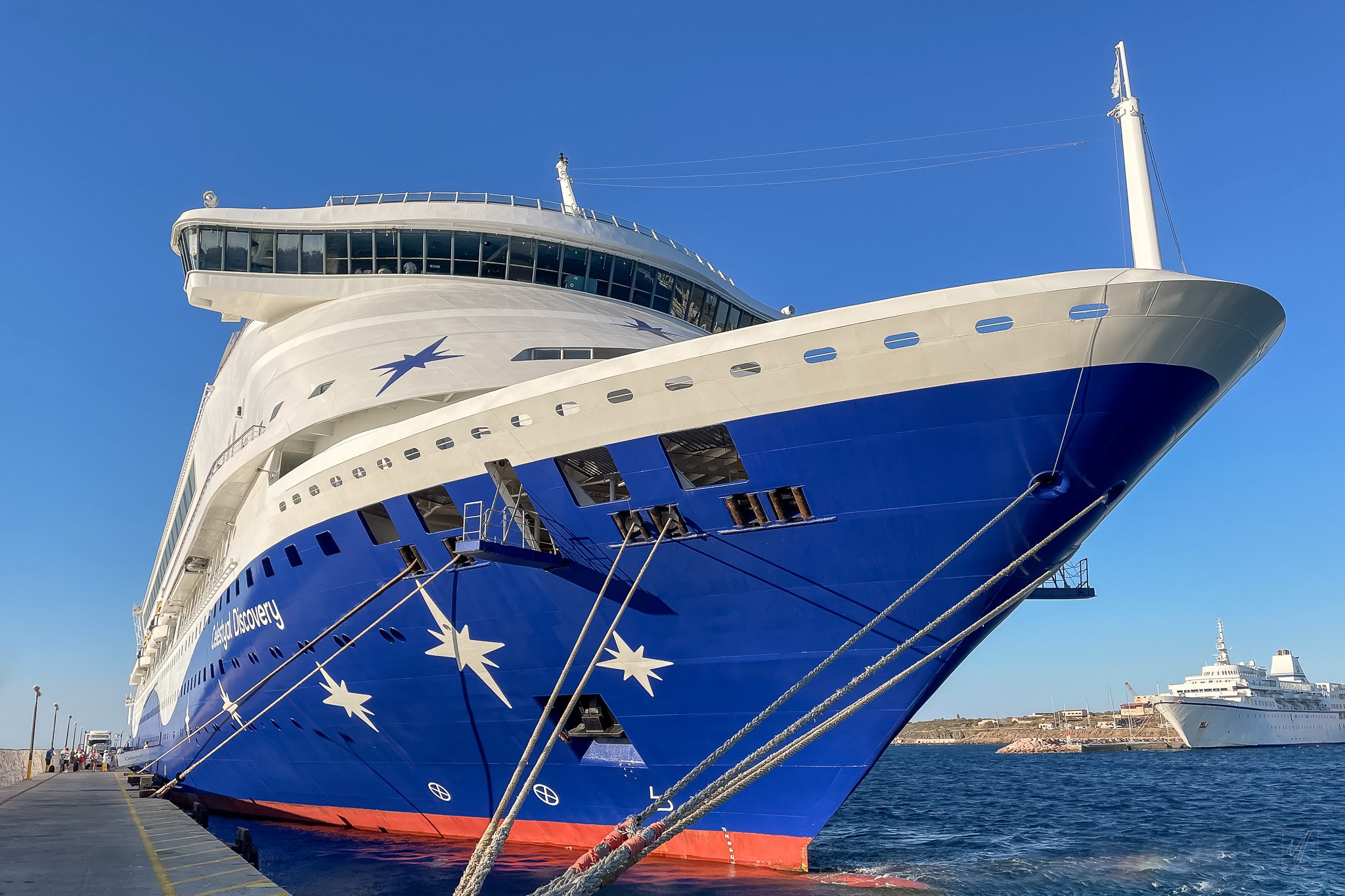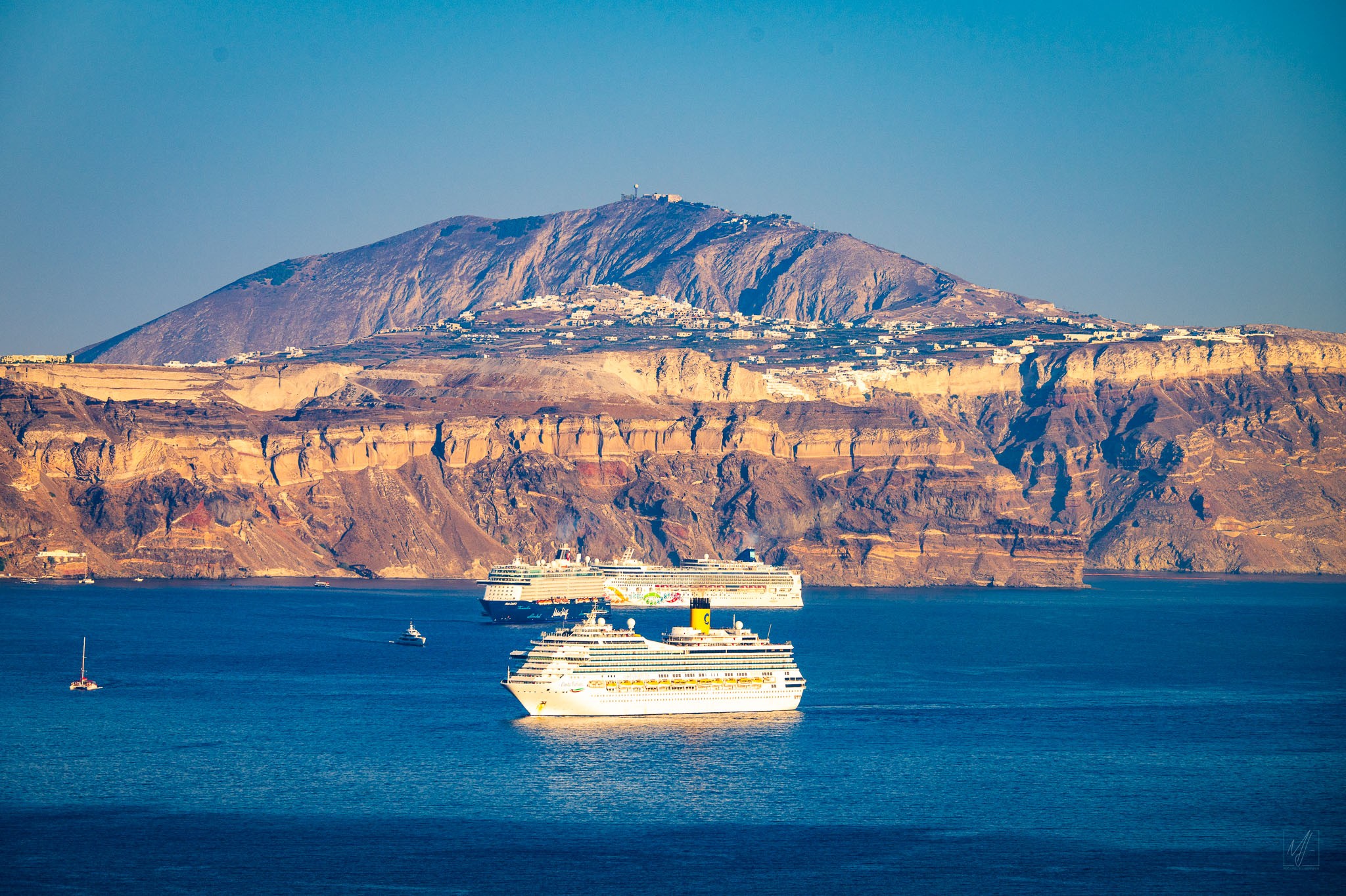 Lunch is back on board the Celestyal Discovery, along with some much needed time to pack for disembarkation. At 4p the ship arrives in the Santorini Caldera and shortly thereafter we are on a tender to the island.